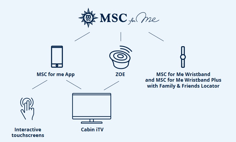Interaktivní technologie náramku (MSC for Me Wristband) naviguje, hýčká, překvapuje i spojuje hosty a posádku. Snadno nositelné zařízení zařídí pomocí technologie NFC vše jako palubní karta Cruise Card.  Náramek MSC for Me Wristband Plus má další funkci - Family & Friends Locator. V době pandemie slouží také pro trasování rizikových kontaktů na palubě lodi.