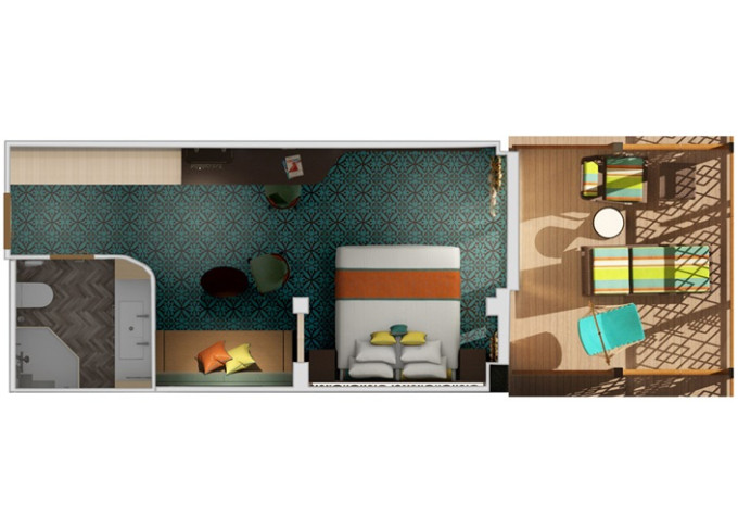 HE - Kajuta Havana Cabana s patiom 26 m² / vnější patio 8 m². Tropický styl, vstup do exkluzivní zóny Havana. 57 526 Kč 28 763 Kč za osobu