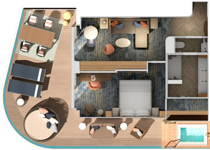SV - Suite Carnival Excel Presidential 45 m²/ balkon 60 m². Výhody Suite. 204 848 Kč 102 424 Kč za osobu