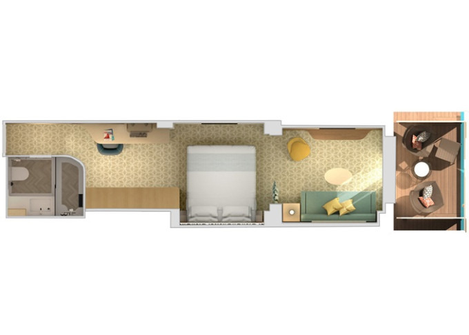 7S - Kajuta s balkonem Cloud 9 Spa Cove 19 m²/ balkon s chráněným výhledem 4 m². Volný vstup do Spa a balíček Cloud 9 Spa. 36 630 Kč 18 315 Kč za osobu