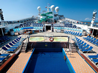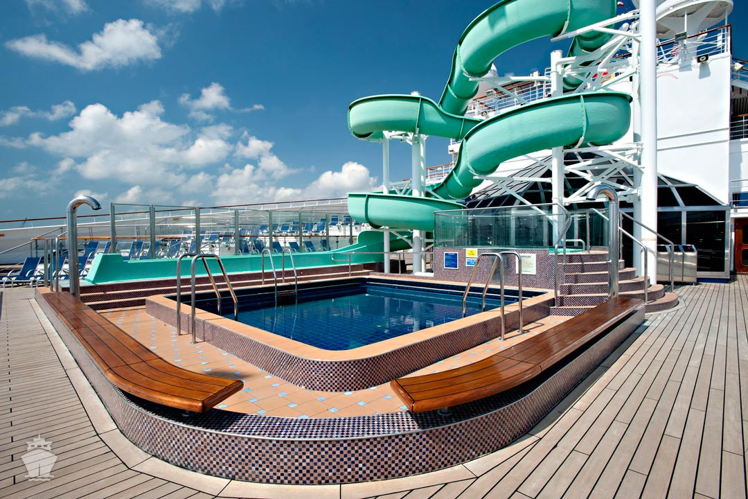 • využívání fitness centra, sauny, běžecké dráhy, bazénů, vířivek, tobogánů a vodního parku (na vybraných lodích), minigolf, basketbal, volejbal, stolní tenis, knihovna