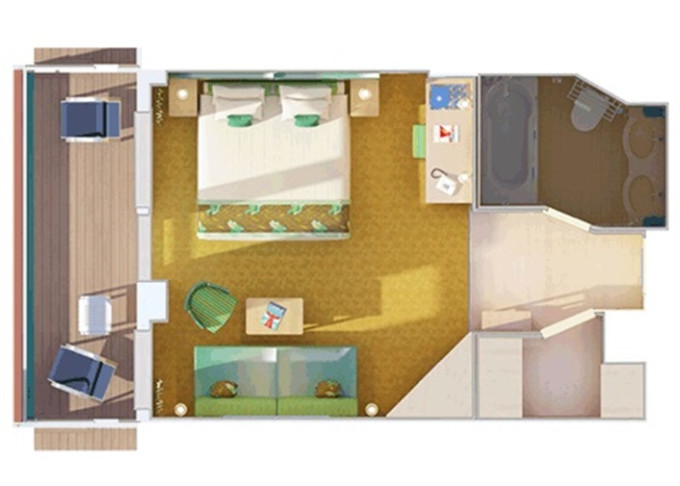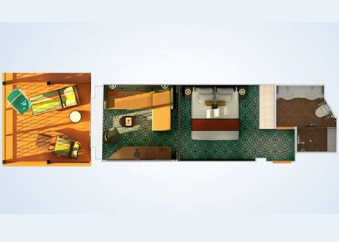 HE - Kajuta Havana Cabana s patiom 17 m² / vnější patio 10 m². Tropický styl, vstup do exkluzivní zóny Havana. 76 016 Kč 38 008 Kč za osobu