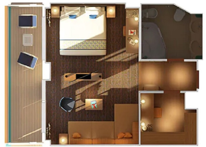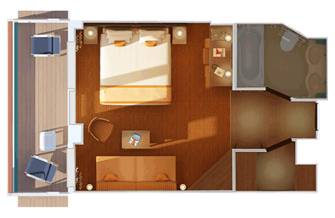 8S - Kajuta s balkonem Cloud 9 Spa 17 m²/ balkon 3 m². Volný vstup do Spa a balíček Cloud 9 Spa. 53 267 Kč 26 633 Kč za osobu