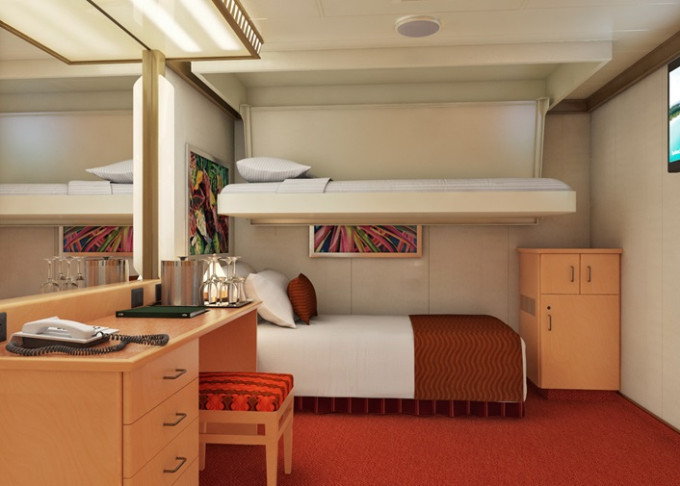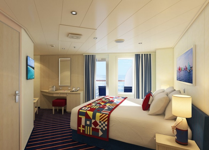 FJ - Vnější kajuta Family Harbour Deluxe 20 m². Neotevíratelné okno / omezený výhled. Námořní styl, speciální služby pro rodiny s dětmi. 41 741 Kč 20 871 Kč za osobu