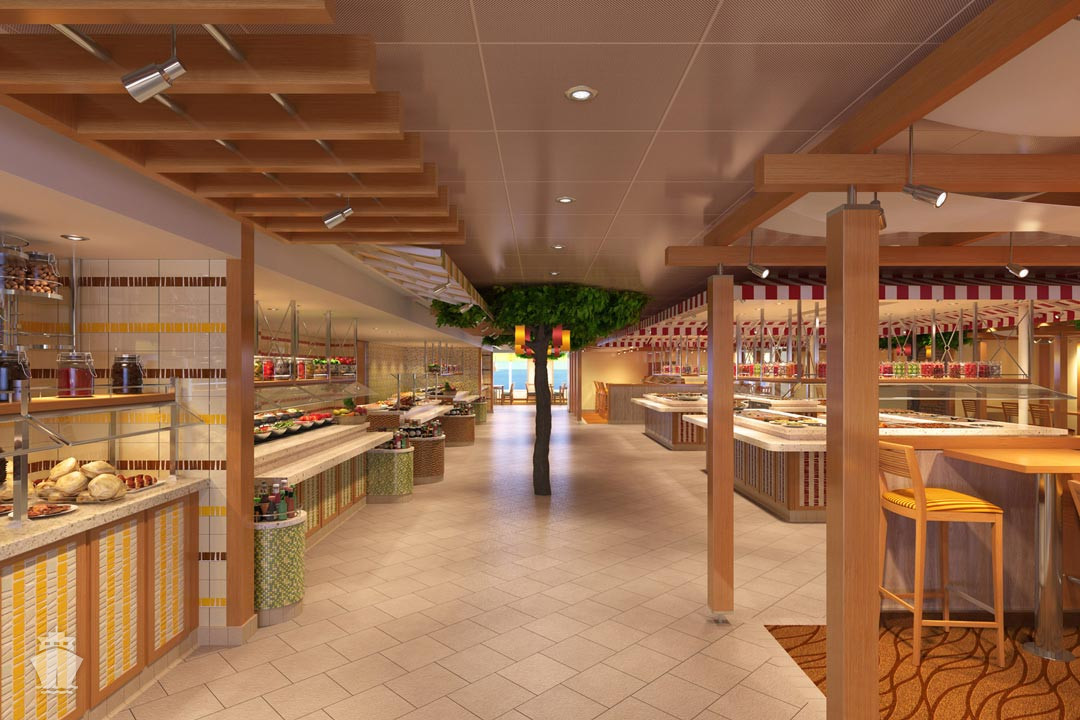 • plná penze v hlavních restauracích Main Dining Room, v 24/7 bufetových restauracích Lido a v 24/7 pizzerii