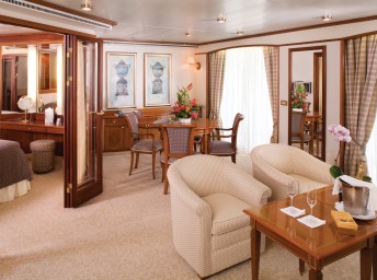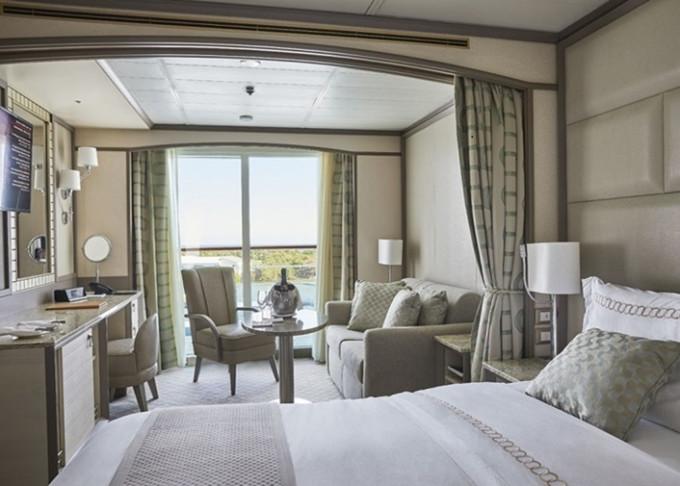 SV - Superior Veranda Suite 32 m² (včetně balkona). Horní paluby. Ložnice s obývací částí. 295 647 Kč 147 823 Kč za osobu