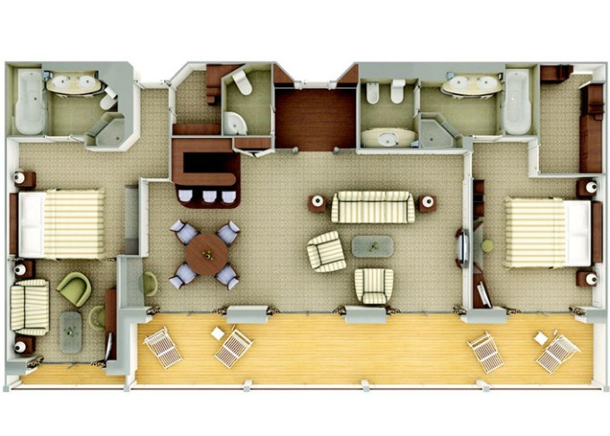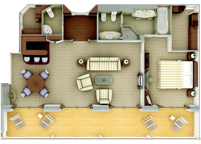 SL - Silver Suite 61-65 m² (včetně verandy). Ložnice, oddělená obývací časť a jídelní část, vírívka. 400 877 Kč 200 438 Kč za osobu