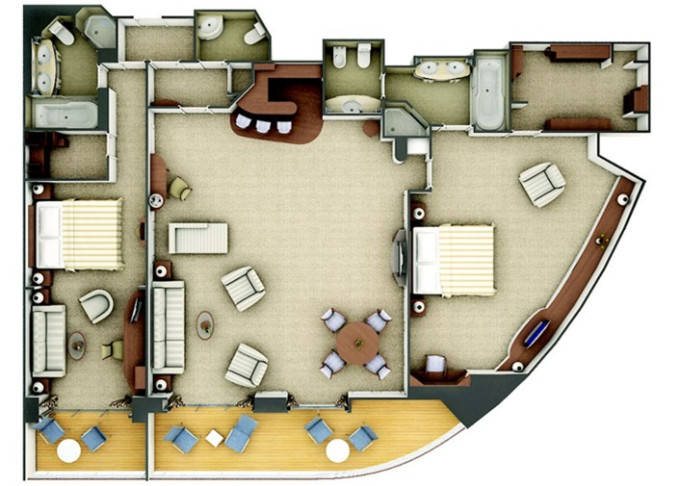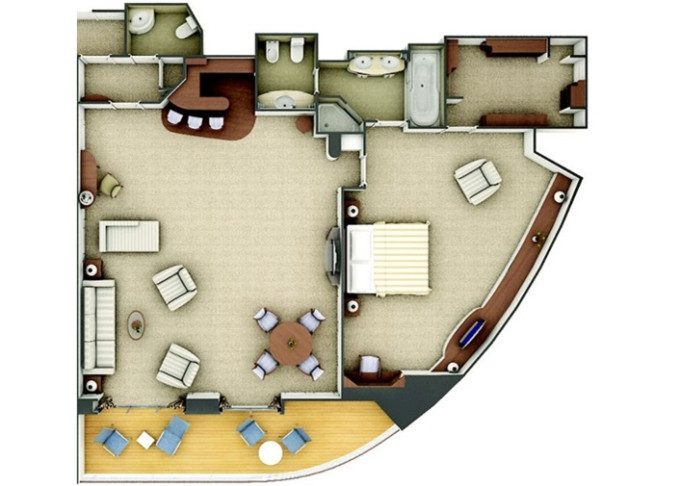 O2 - Owner's Suite 2 117 m² (včetně balkonu).Owners Suite O1 spojená s Vista Suite. 1 367 992 Kč 455 997 Kč za osobu