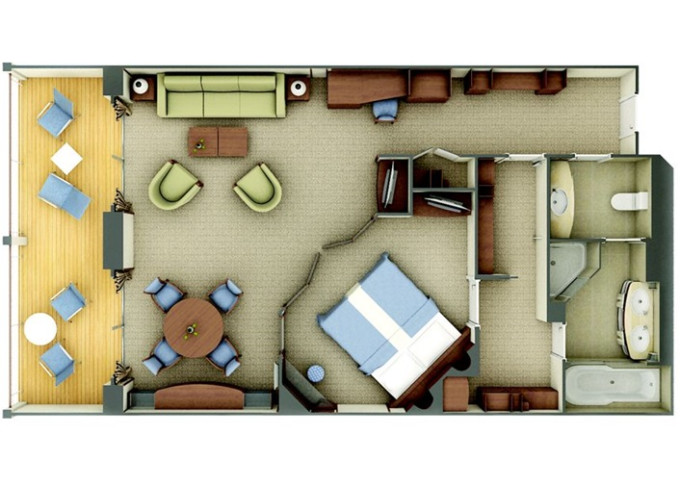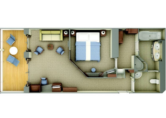 SV - Superior Veranda Suite 32 m² (včetně balkona). Horní paluby. Ložnice s obývací částí. 295 647 Kč 295 647 Kč za osobu