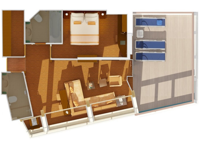 | CS - Captain's Suite 50 m² / balkon 24 m². Výhody Suite. Max 5 osob. | 95 659 Kč 47 830 Kč za osobu | ||