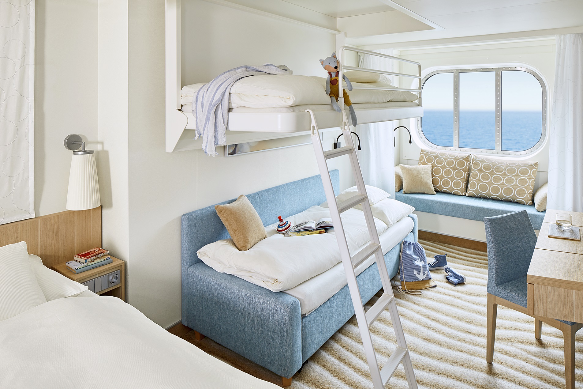 Rodinné kajuty jsou na palubách 15, 16 a 17; na palubě 16 se nachází Mini club, Kids club a Spacey Wave Club.