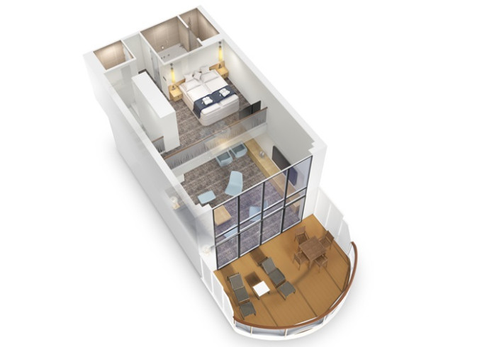 | DB - Kajuta s verandou Deluxe PREMIUM od 17,5 m²/ balkon 11 m². Cenový model Premium. Max 5 osob. | 103 226 Kč 51 613 Kč za osobu |