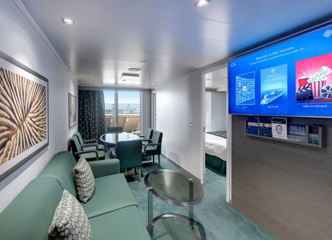 | YC4 - Yacht Club Owner's Suite s vířivkou 98 m² + balkon s vířivkou 25 m². Oddělený obývací pokoj a ložnice, šatník, koupelna s vanou. Max 5 osob. 19. paluba. Cenový model MSC Yacht Club. | 412 483 Kč 137 494 Kč za osobu |