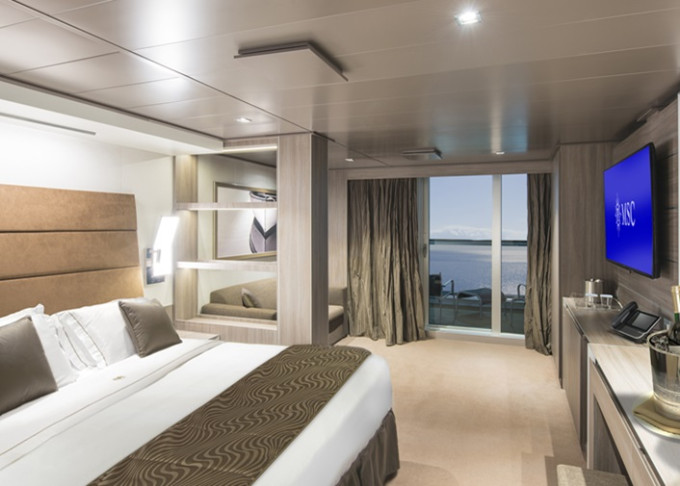 | YC1 - Yacht Club Deluxe Suite od 25 m² + balkon 8 m². Ložnice s oddělenou obývací částí, šatník. Max 5 osob. 16.-19. paluba. Cenový model MSC Yacht Club. | 144 002 Kč 144 002 Kč za osobu | ||
