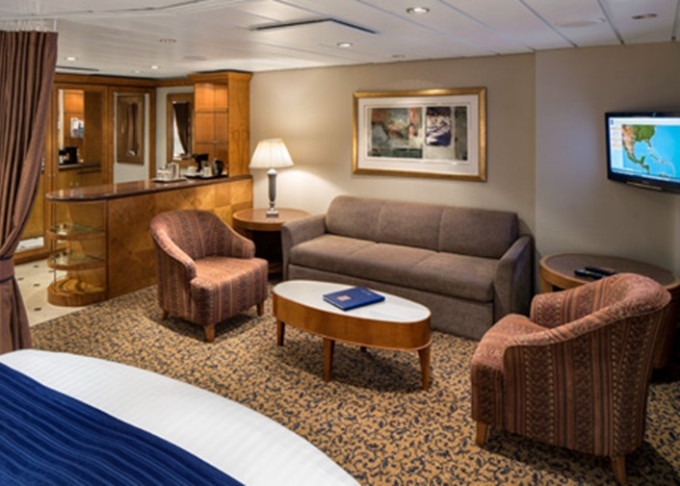 OS - Owner’s Suite s balkonem 49 m² / balkon 5 m². Výhody Royal Suite Class. 10. paluba. Max 4 osoby. 237 545 Kč 237 545 Kč za osobu