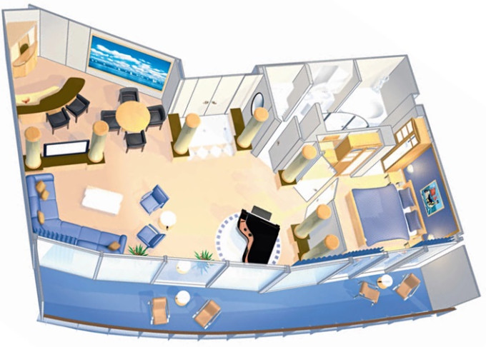 RS - Royal Suite s balkonem 93 m² / balkon 16 m². Výhody Royal Suite Class. 10. paluba. Max 4 osoby. 292 039 Kč 292 039 Kč za osobu