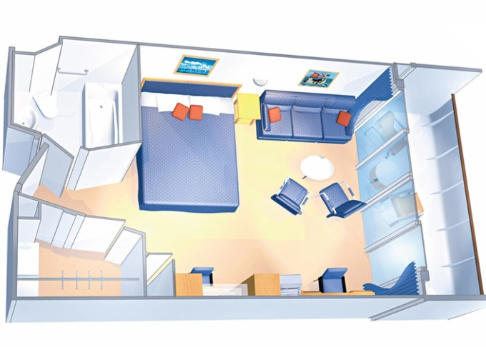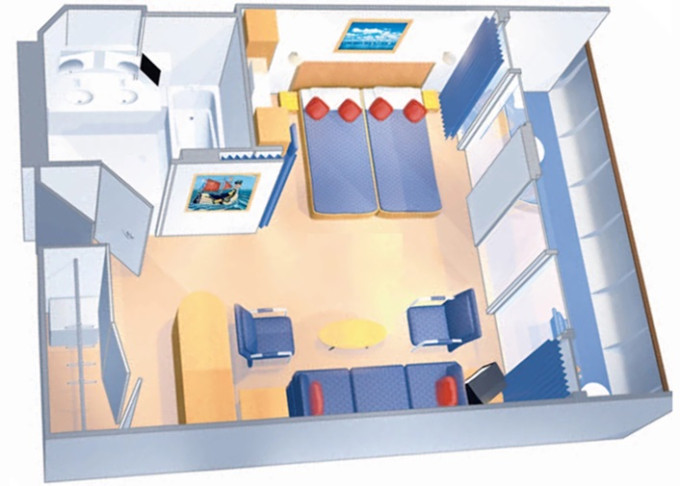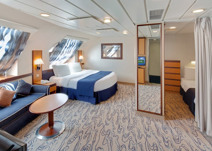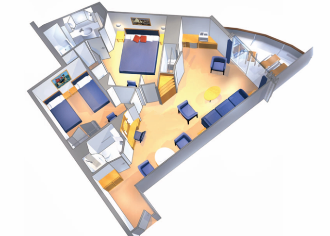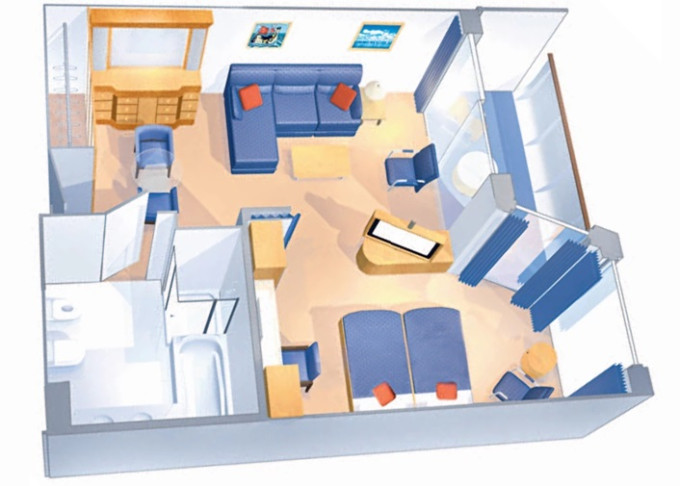 VT - Ocean View Suite / 2 ložnice (bez balkonu) 55 m². Velké neotevíratelné okna. Výhody Royal Suite Class. 10. paluba. Max 8 osob. 142 963 Kč 142 963 Kč za osobu