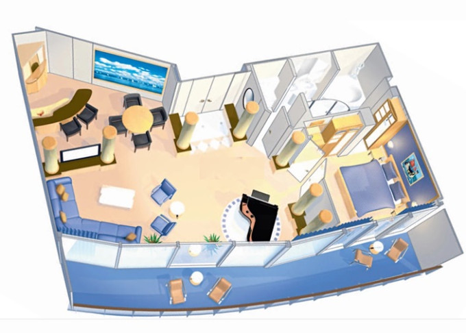 OS - Owner’s Suite s balkonem 47,5 m² / balkon 5 m². Výhody Royal Suite Class. 10. paluba. Max 4 osoby. 177 488 Kč 177 488 Kč za osobu