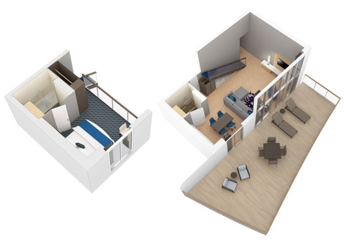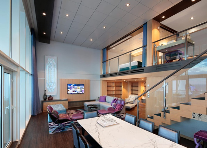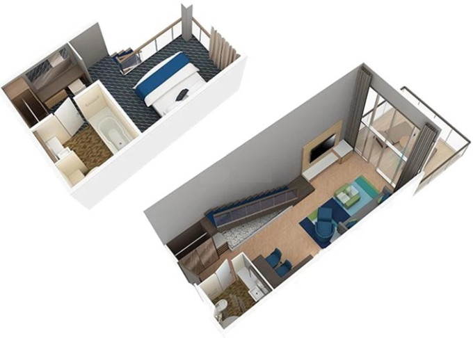 | L1 - Crown Loft Suite s balkonem 50 m² / balkon 10 m². 2-podlažní apartmán. Výhody Royal Suite Class. 17. paluba. Max 4 osoby. | 309 226 Kč 309 226 Kč za osobu | ||