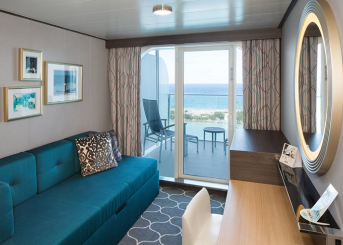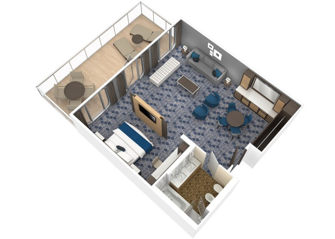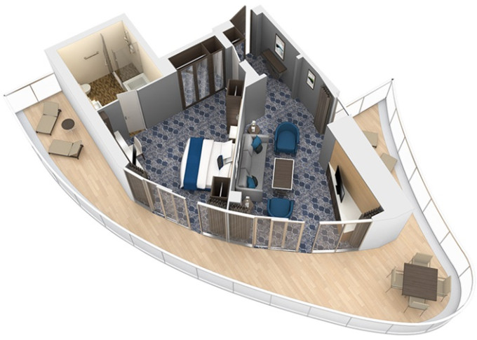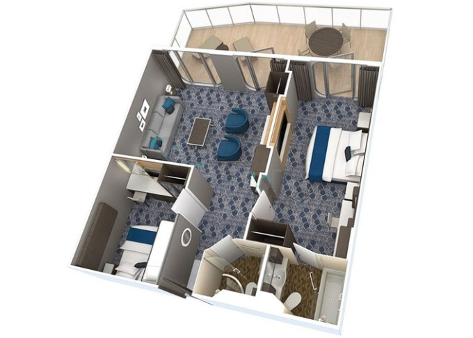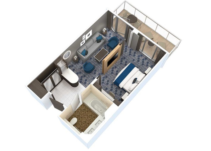 | J4 - Junior Suite s balkonem 26,5 m² / balkon 7,5 m². Výhody Royal Suite Class. 6. až 14. paluba. Max 5 osob. | 254 106 Kč 254 106 Kč za osobu | ||