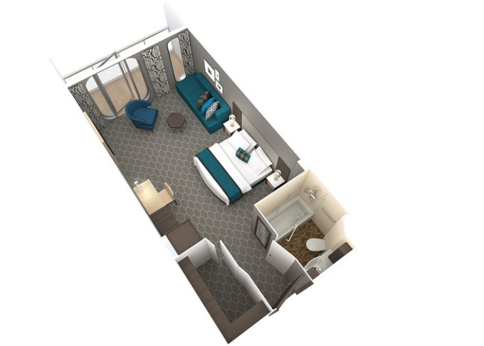 | 2T - Vnitřní kajuta Promenade View / s oknem 18 m². Neotevíratelné okno (výhled na Promenade). 7. paluba. Max 4 osoby. | 95 158 Kč 47 579 Kč za osobu | ||