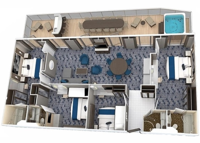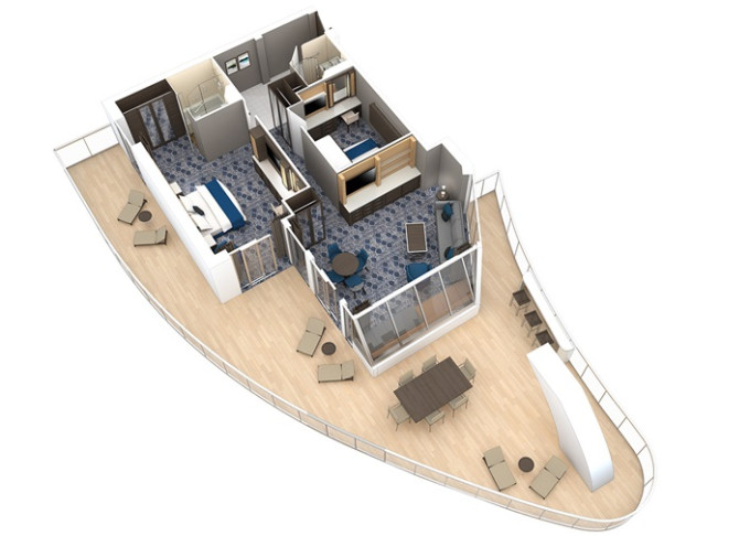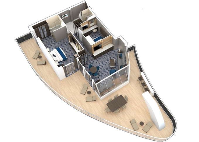 | A1 - Spacious AquaTheater Suite s balkonem / 2 ložnice 76 m² / balkon 72 m². Výhody Royal Suite Class. 8. paluba. Max 8 osob. | 922 493 Kč 922 493 Kč za osobu |