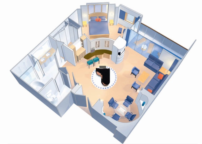 RS - Royal Suite s balkonem 109 m² / balkon 13 m². Výhody Royal Suite Class. Koupelna s vířivkou. 8. paluba. Max 4 osoby. 363 821 Kč 363 821 Kč za osobu