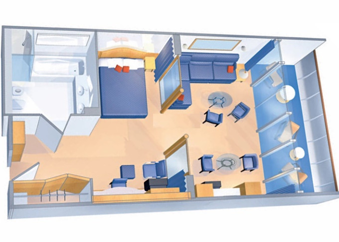 J4 - Junior Suite s balkonem 22,5 m² / balkon 6 m². Výhody Royal Suite Class. 8. paluba. Max 4 osoby. 196 430 Kč 196 430 Kč za osobu