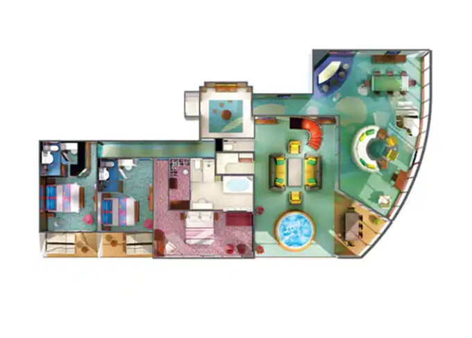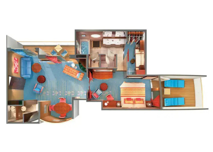 | S4 - Deluxe Family Suite - 2 ložnice 51 m² / balkon 5 m². Výhody Suite. 11. paluba - vpředu, střed. Max 6 osob. | 100 570 Kč 50 285 Kč za osobu |
