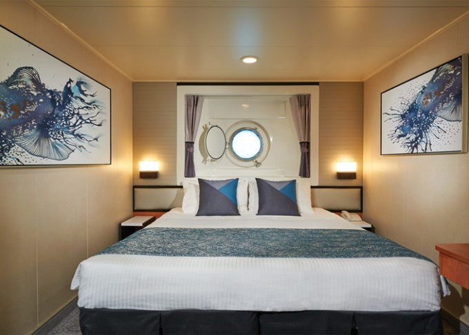 Kajuta s oknem: cca 13 - 15 m²; varianta s omezeným výhledem, s malým oknem, s velkým oknem; okna nelze otevírat.