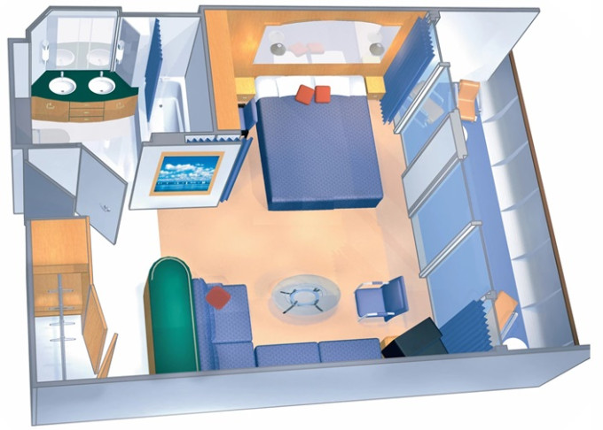 1K - Velká vnější kajuta Ultra Spacious 56 m². Neotevíratelné okno. 8. paluba. Max 8 osob. 55 296 Kč 55 296 Kč za osobu