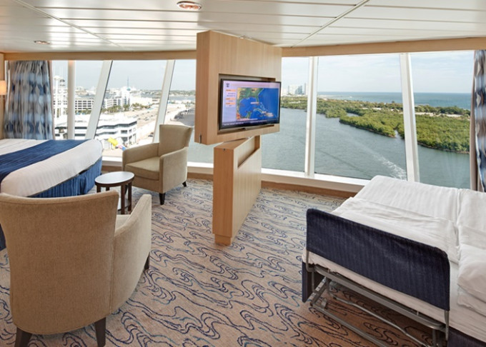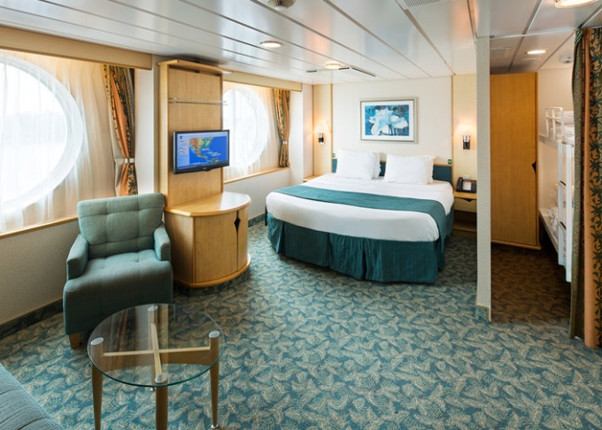 | VP - Ocean View Panoramic Suite (bez balkonu) 38 m². Panoramatické neotevíratelné okna. Výhody Royal Suite Class. 12. paluba. Max 6 osob. | 206 477 Kč 206 477 Kč za osobu |