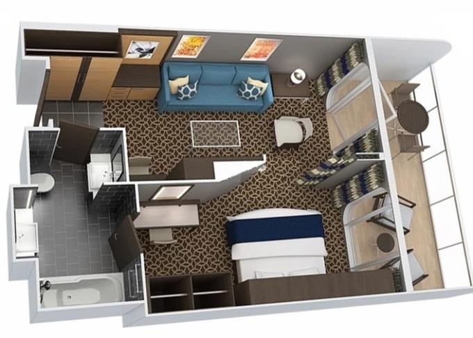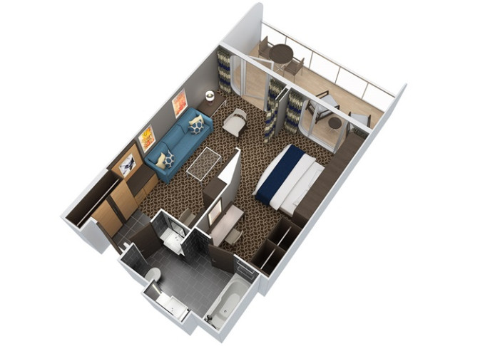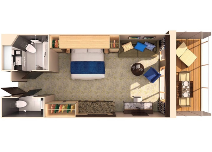 | J3 - Junior Suite s balkonem 25 m² / balkon 7,5 m². Výhody Royal Suite Class. 8/9/10. paluba. Max 4 osoby. | 139 605 Kč 34 901 Kč za osobu | ||