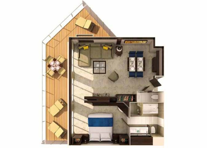 | SL - Sky Loft Suite s balkonem 69 m² / balkon 17 m². 2-podlažní apartmán. Výhody Royal Suite Class. 8/10. paluba. Max 4 osoby. | 329 821 Kč 82 455 Kč za osobu | ||