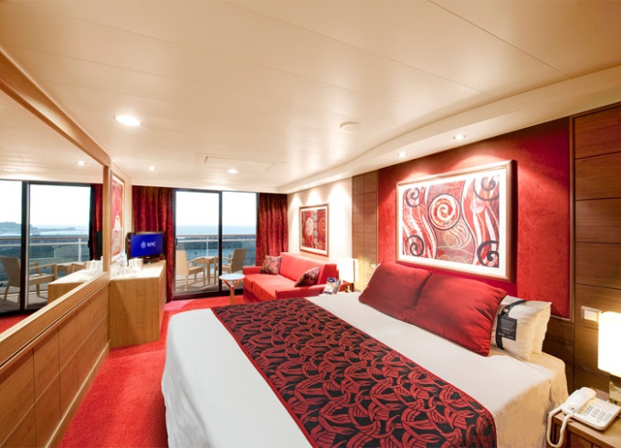 - ubytování v plně vybavené kajutě: vlastní koupelna se sprchou a WC, interaktivní TV, telefon, trezor, vysoušeč vlasů, regulovatelná klimatizace, minibar (za poplatek), Wi-fi (za poplatek)