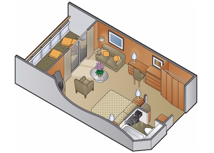 | CS - Celebrity Suite 43 m² + balkon 8 m² . Koupelna s vířivkou. 6. až 9. paluba. Max 3 osoby.Výhody Suite. | 207 554 Kč 51 888 Kč za osobu | ||