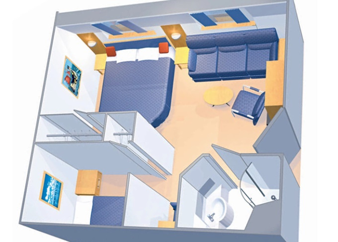 | VP - Ocean View Panoramic Suite (bez balkonu) 37,5 m². Celoplošné neotevíratelné okna. Výhody Royal Suite Class. Výhody Royal Suite Class. 12. paluba. Max 6 osob. | 141 059 Kč 70 529 Kč za osobu |