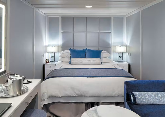| OS - Owner’s Suite 58 m² + rohový balkon 32 m². Výhody Owners Suite. 6/7/8. paluba vzadu. Max 2-4 osoby. Ložnice, předělená obývací a jídelní část, onyxová koupelna se sprchovým koutem, extra wc. | 1 034 212 Kč 517 106 Kč za osobu |