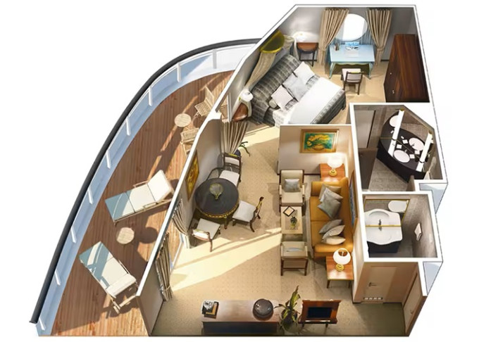 - Owner's Suites: soukromý oběd v apartmánu od 12:00 do 14:00 (volitelné) v den nalodění