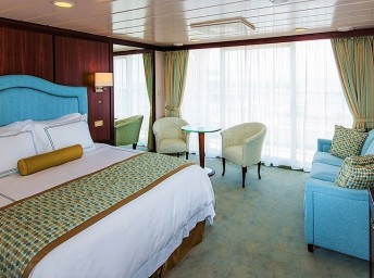 | VS - Vista Suite 50 m² + rohový balkon 23 m². Výhody Vista Suite. 6/7. paluba vpředu. Max 2-4 osoby. Ložnice, předělená obývací a jídelní část, onyxová koupelna se sprchovým koutem a vířivkou, extra wc. | 1 618 991 Kč 809 496 Kč za osobu |