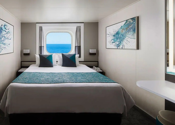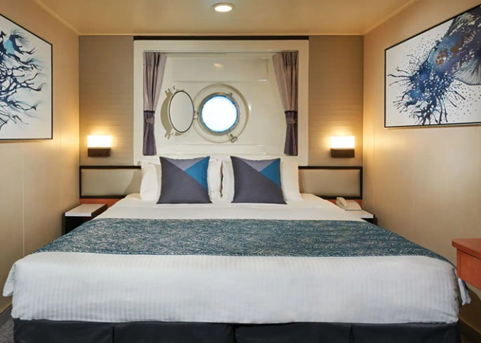 Kajuta s oknem: cca 13 - 15 m²; varianta s omezeným výhledem, s malým oknem, s velkým oknem; okna nelze otevírat.