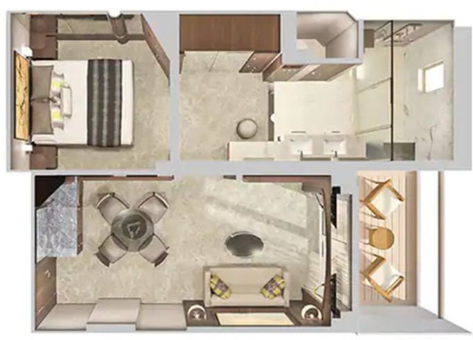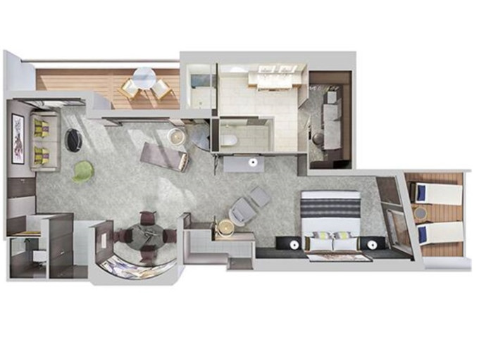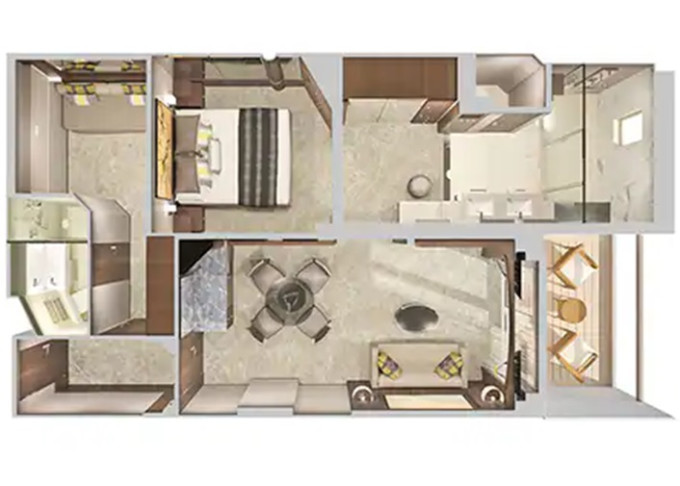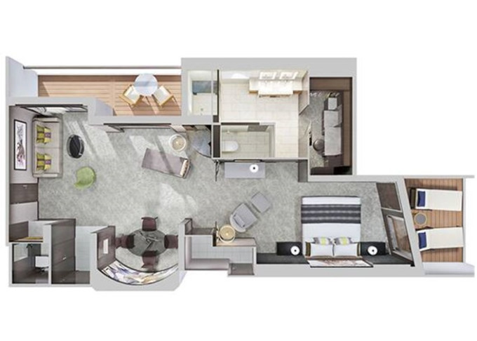| S4 - Deluxe Family Suite - 2 ložnice 51 m² / balkon 5 m². Výhody Suite. 11. paluba - vpředu, střed. Max 6 osob. | 197 131 Kč 98 566 Kč za osobu |