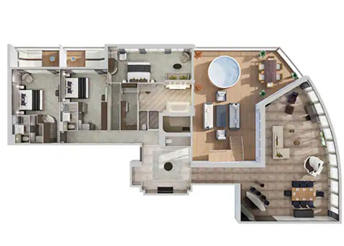 | H1 - The Haven Garden Villa - 3 ložnice 454 m² / balkon 215 m². Vířivka. Výhody The Haven. 14. paluba - střed. Max 8 osob. | 804 460 Kč 402 230 Kč za osobu |