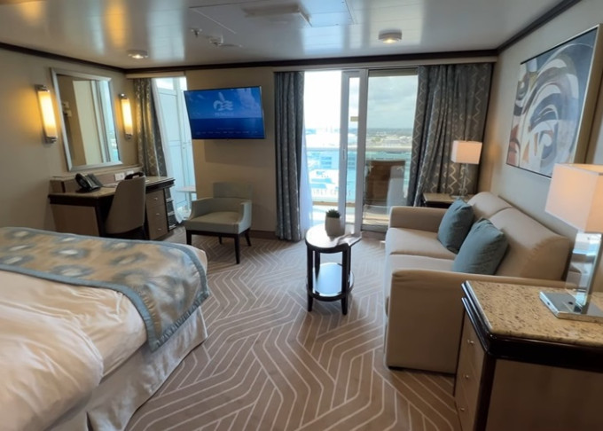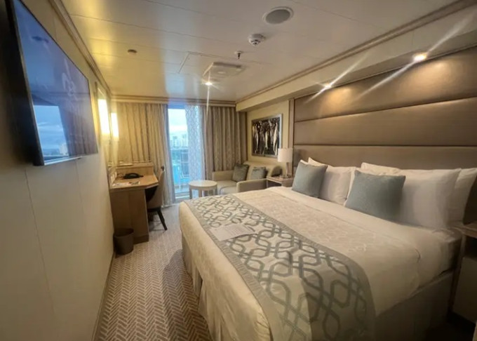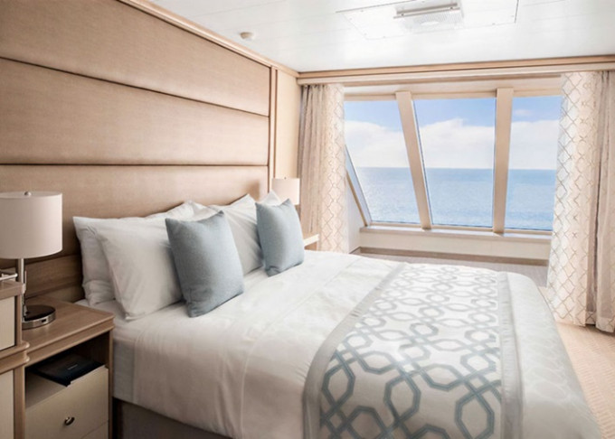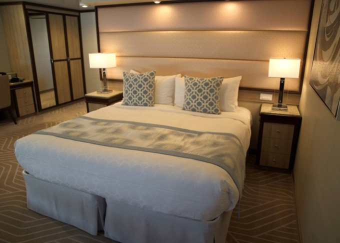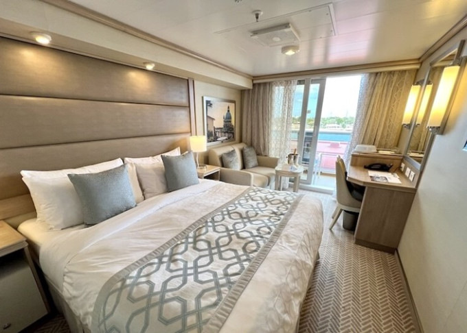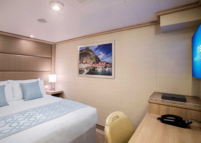 Standardní vybavení kajut: koupelna se sprchou a toaletou, 2 lůžka s možností konfigurace, úložné prostory, minibar, fén, TV, trezor. Balkony je vybaven malým stolkem a 2 židlemi či lehátky.