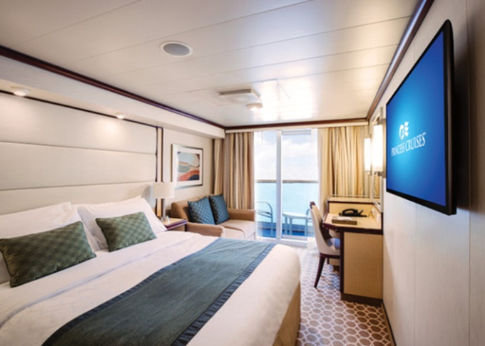 Standardní vybavení kajut: koupelna se sprchou a toaletou, 2 lůžka s možností konfigurace, úložné prostory, minibar, fén, TV, trezor. Balkony je vybaven malým stolkem a 2 židlemi či lehátky.