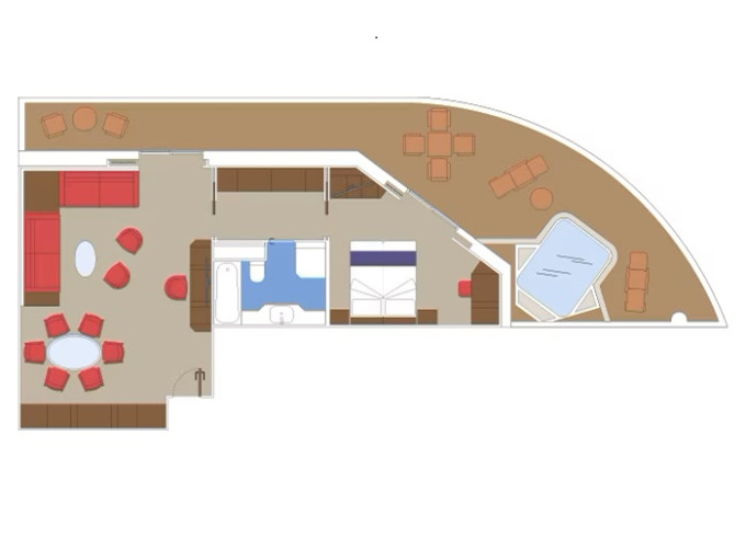 | YCD - Duplex Suite Yacht Club 46 m² + balkón 6 m². Mezonet, 2 koupelny (1 s vanou) Max 4 osoby. 16. paluba. Cenový model MSC Yacht Club. | 174 156 Kč 174 156 Kč za osobu |