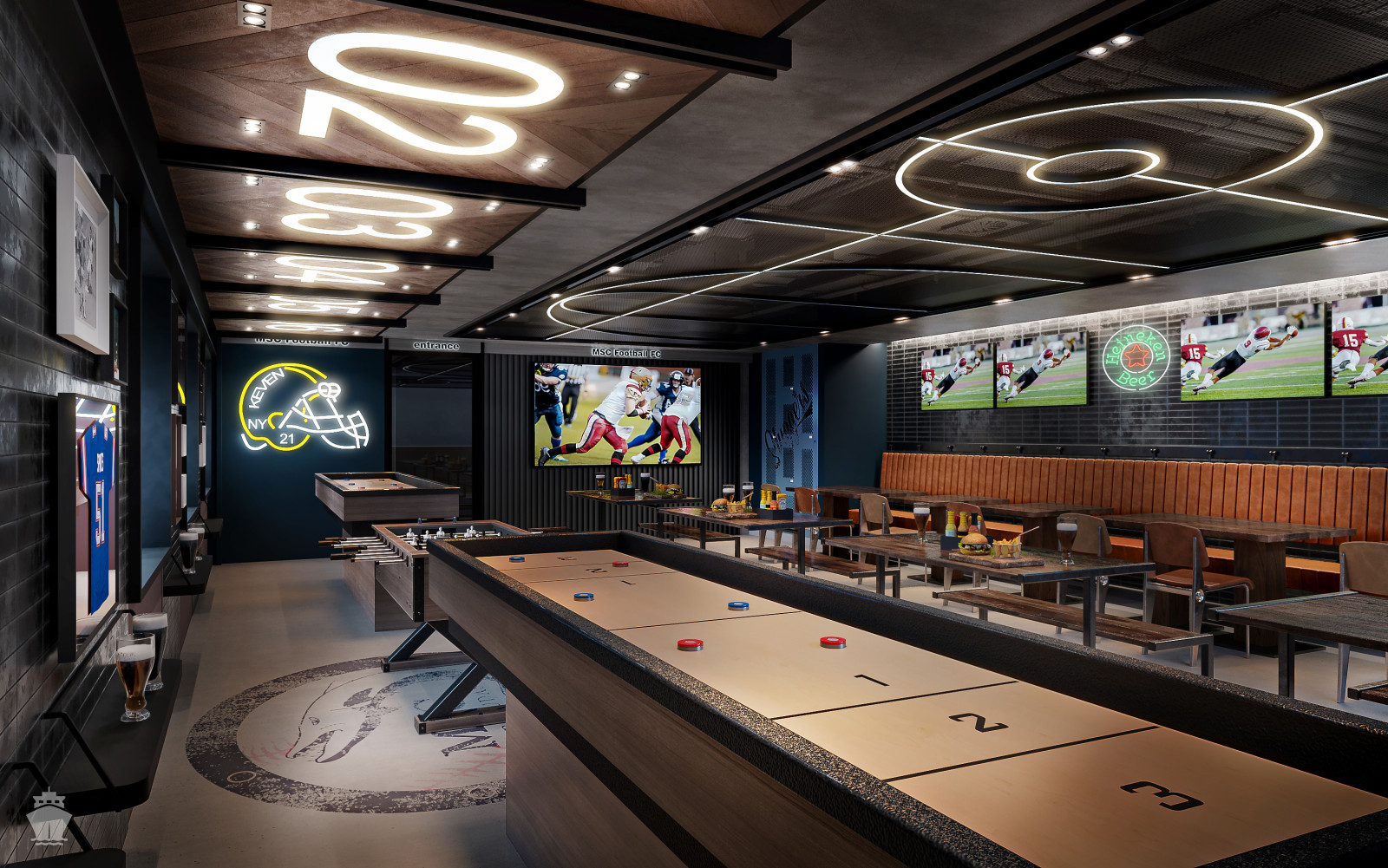 - Sports Bar s možností sledovat sportovní přenosy nebo si zahrát šipky či stolní fotbal
