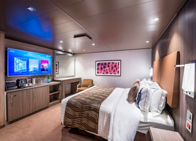 - ubytování v plně vybavené kajutě: vlastní koupelna se sprchou a WC, interaktivní TV, telefon, trezor, vysoušeč vlasů, regulovatelná klimatizace, minibar (za poplatek), Wi-fi (za poplatek)