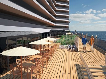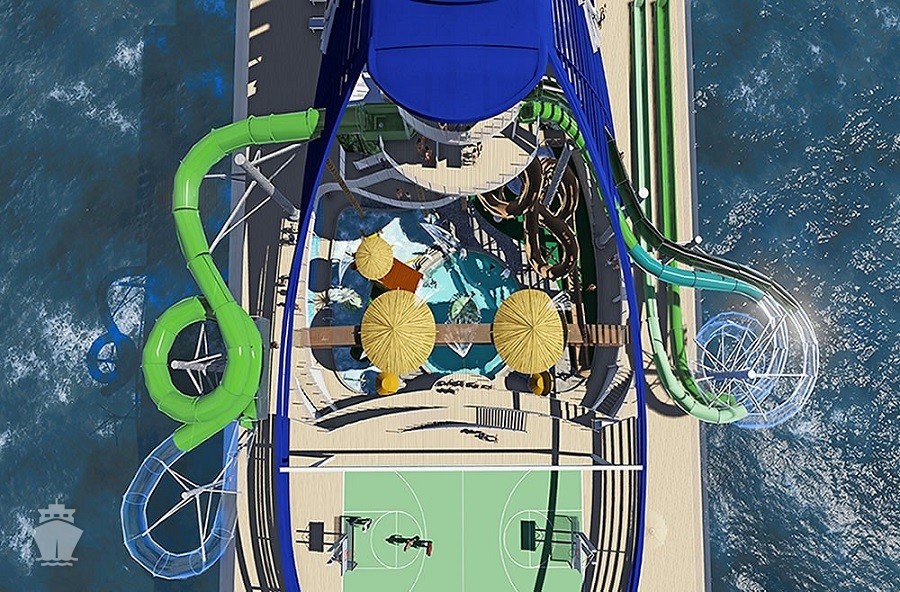 - sportovní aktivity na otevřených palubách (jogging, basketbal, fotbal, tenis), bazény a lehátka