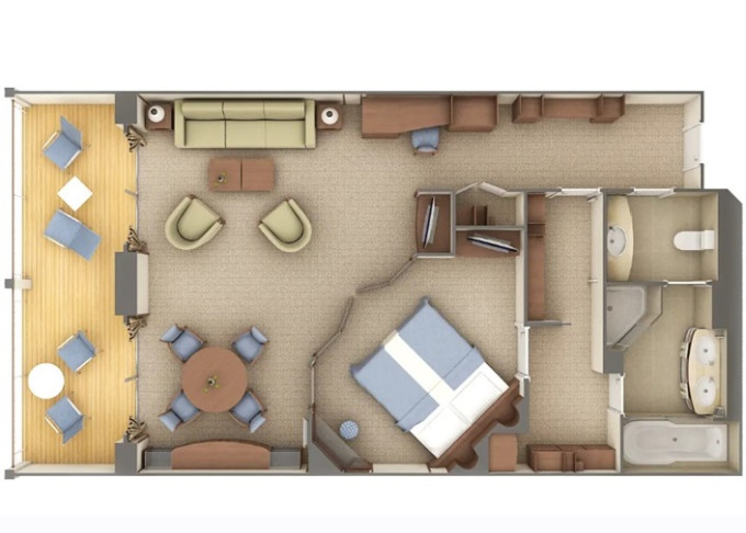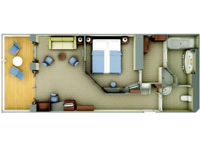 DX - Deluxe Veranda Suite 32m² (včetně balkona). Centrálna pozícia. Ložnice s oddělitelnou obývací částí. 586 282 Kč 586 282 Kč za osobu
